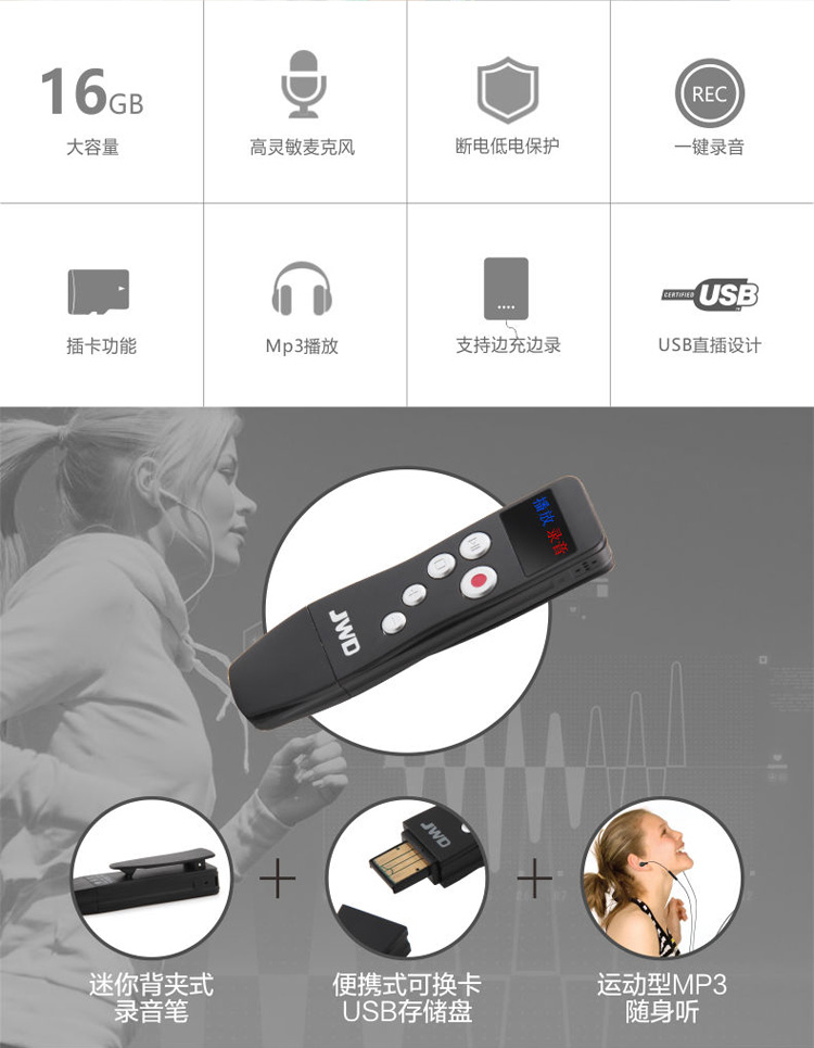 會議采訪 運動跑步型usb插拔式便捷錄音筆