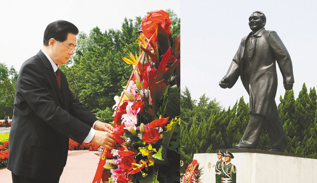 9月6日,中共中央總書記、國家主席、中央軍委主席胡錦濤在廣東深圳蓮花山公園向鄧小平同志銅像敬獻花籃,表達對鄧小平同志的無限敬意和懷念。 新華社記者 李學仁 攝